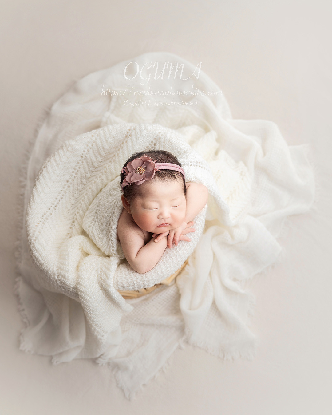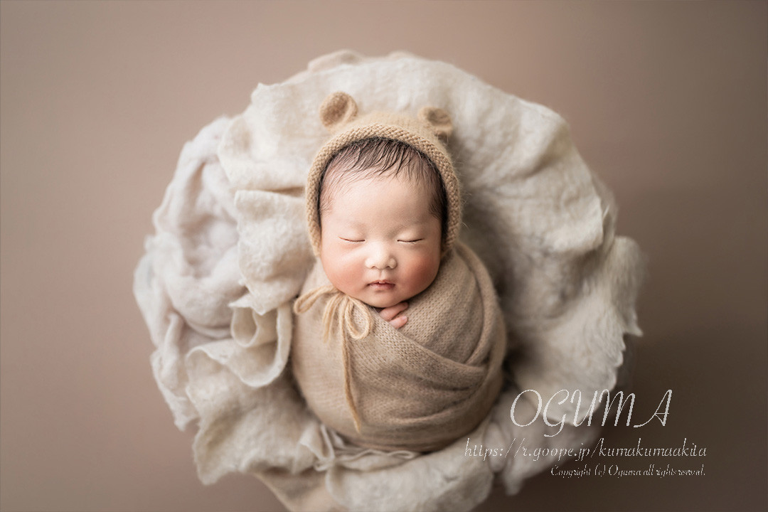 ★季節により、ご用意するおくるみや衣装が変わります。赤ちゃんの向き癖なども考慮してポーズしますので、サンプル写真と全く同じに撮影できるという訳ではありません。撮影したい衣装やイメージがある場合は、あらかじめご相談ください。